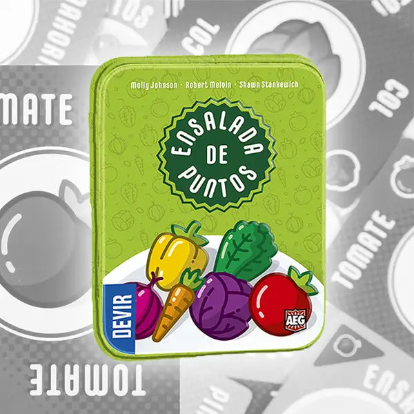 Ensalada de puntos es un rápido y divertido juego de cartas diseñado por Molly Johnson, Robert Melvin y Shawn Stankewich e ilustrado por Dylan Mangini. Pueden jugar de 2 a 6 personas, a partir de 8 años, en partidas que duran entre 15 y 30 minutos. El objetivo es sumar la máxima puntuación combinando las cartas entre ellas. ¡Hay más de 100 formas diferentes de puntuar!